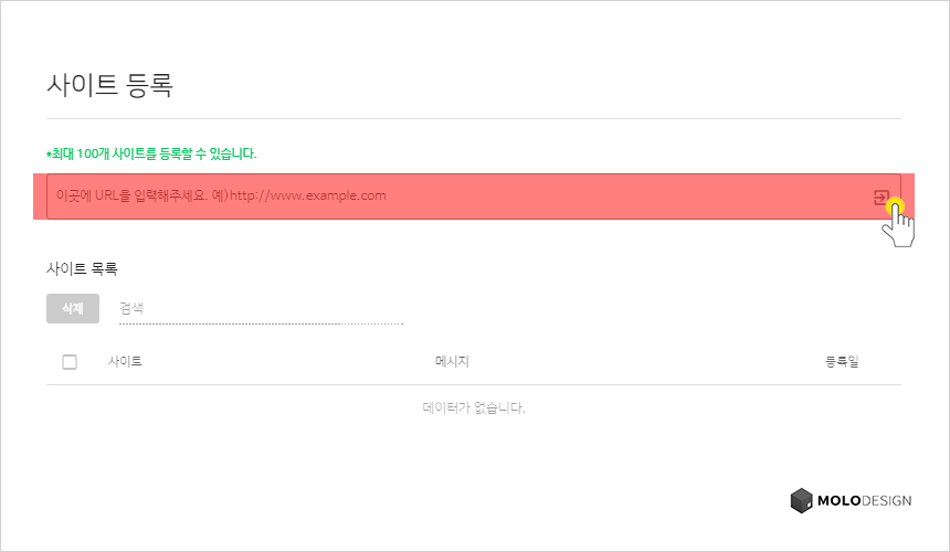 URL은 구입하신 도메인을 그대로 입력해주세요.