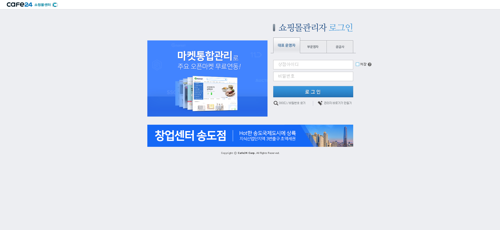 카페24 쇼핑몰관리자 로그인 바로가기!